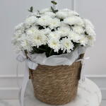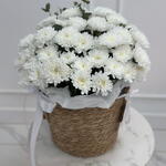 Хризантема кустовая - 7 шт. Эвкалипт - 1 шт. Кашпо - 1 шт.