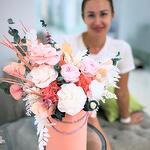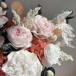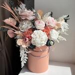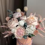 Роза стабилизированная - 3 шт. Эвкалипт стабилизированный - 150 гр. гортензия стабилизированная - 3 шт. роза пионовидная стабилизированная - 4 шт.
