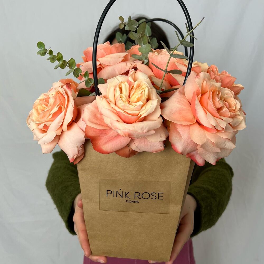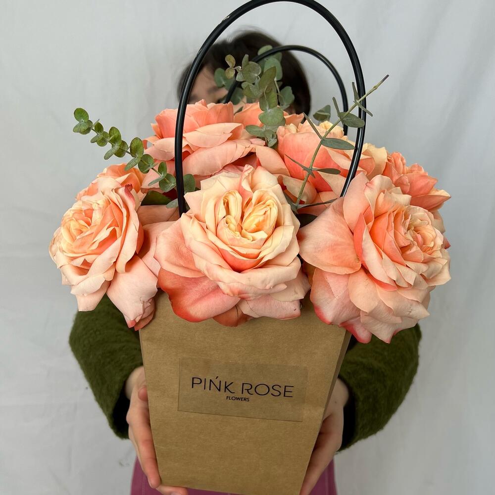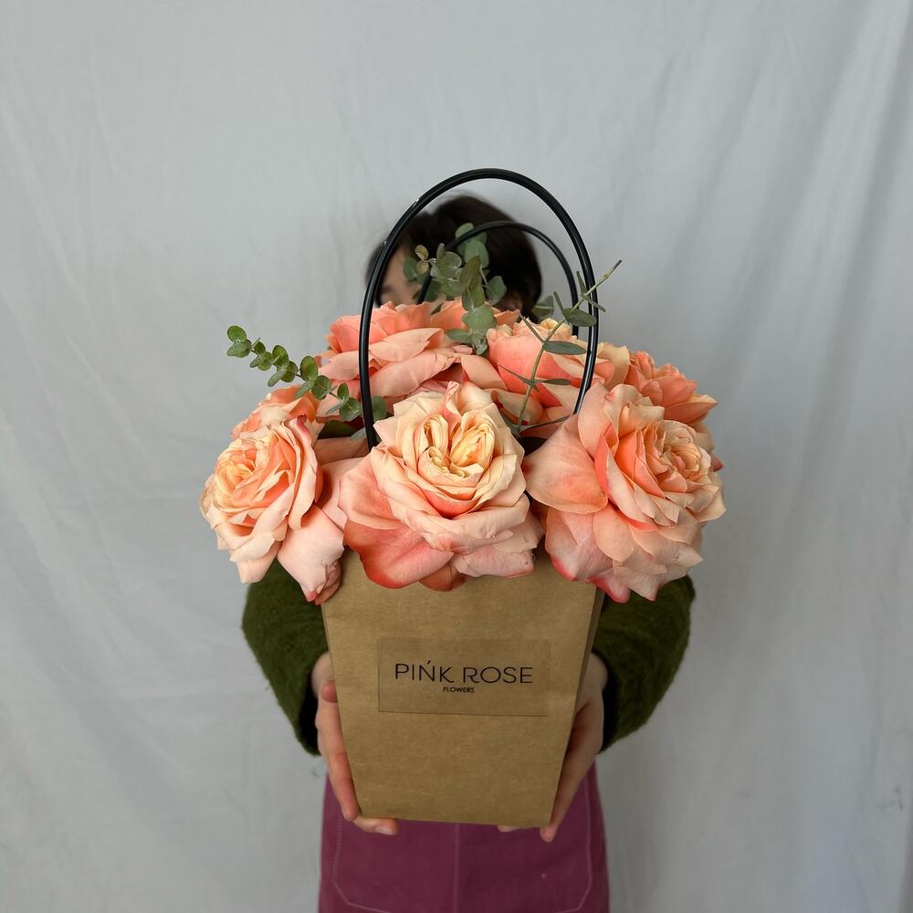 Букет в сумочке выглядит очень эффектно , а наша форменная открытка дополнит ваши пожелания 🥰