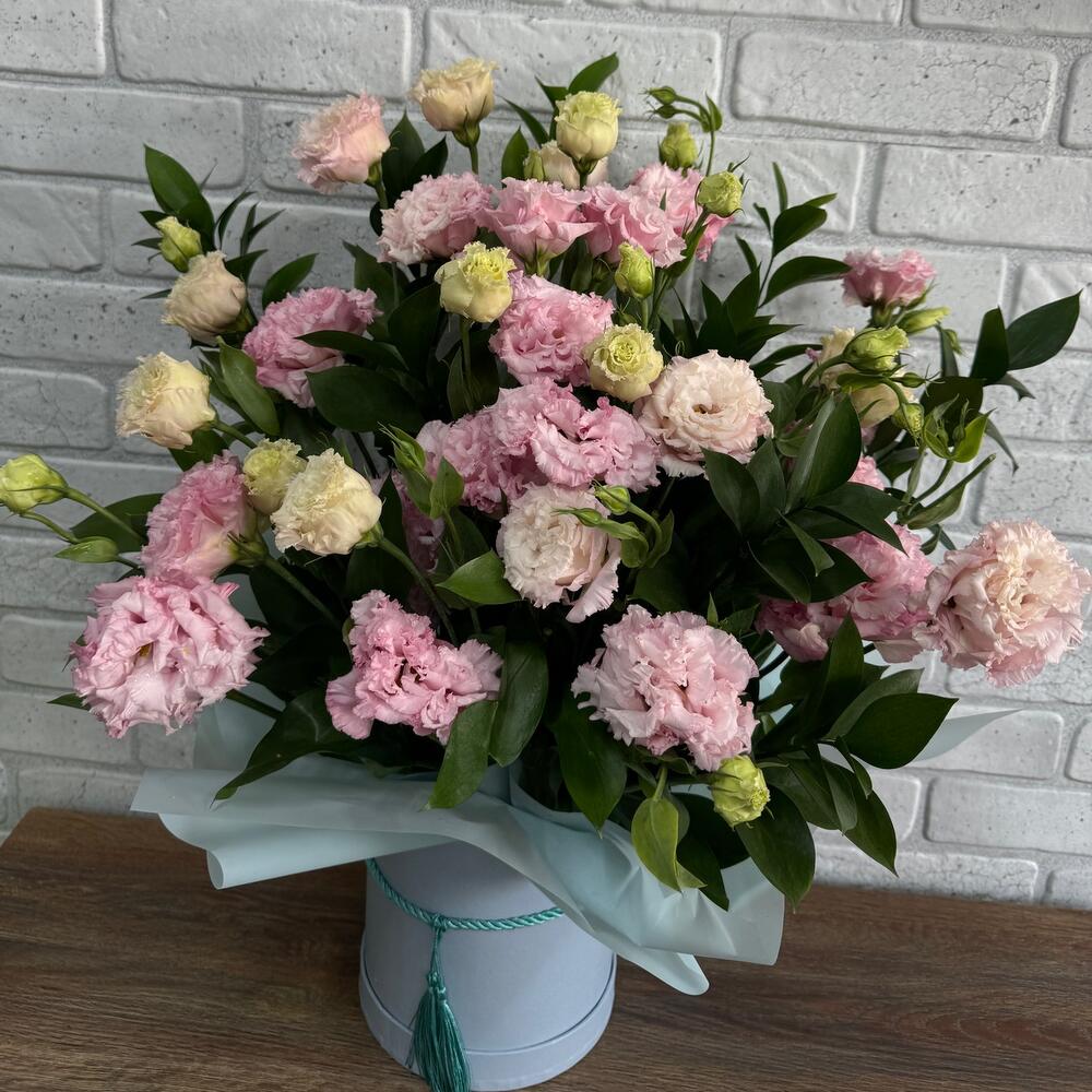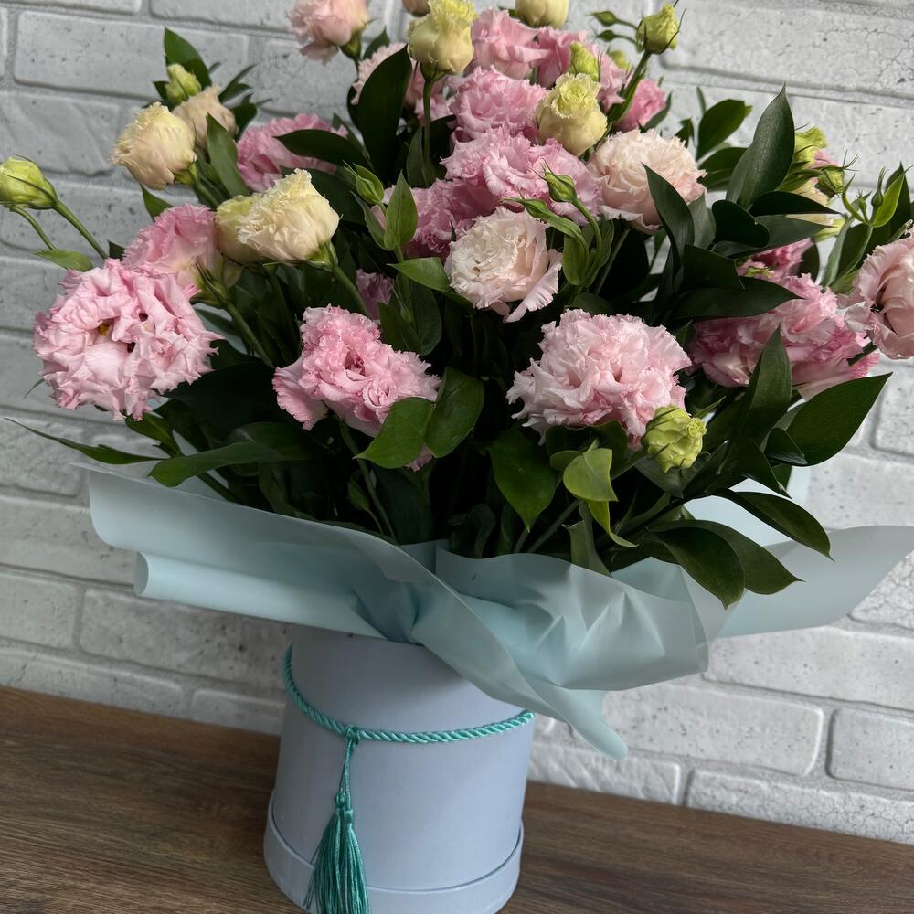 Лизиантус - 11 шт. Рускус - 7 шт. Коробка шляпная - 1 шт.