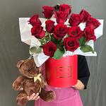 Мишка плюшевый - 1 шт. розы - 14 шт.