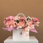 Роза - 7 шт. Хризантема - 3 шт. Гвоздика - 5 шт. Сумка картон - 1 шт.