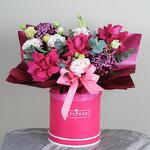 Яркая и стильная цветочная композиция в коробке, наполненная теплом и изысканностью. В составе — 3 роскошные розы Pink Floyd, 3 веточки нежной эустомы, 2 хризантемы “бигуди” с завораживающей фактурой и веточка ароматного эвкалипта. Всё это оформлено в розовой коробке с флористическим оазисом, который сохраняет свежесть цветов надолго. Идеальный подарок для выражения любви, благодарности или просто для настроения.