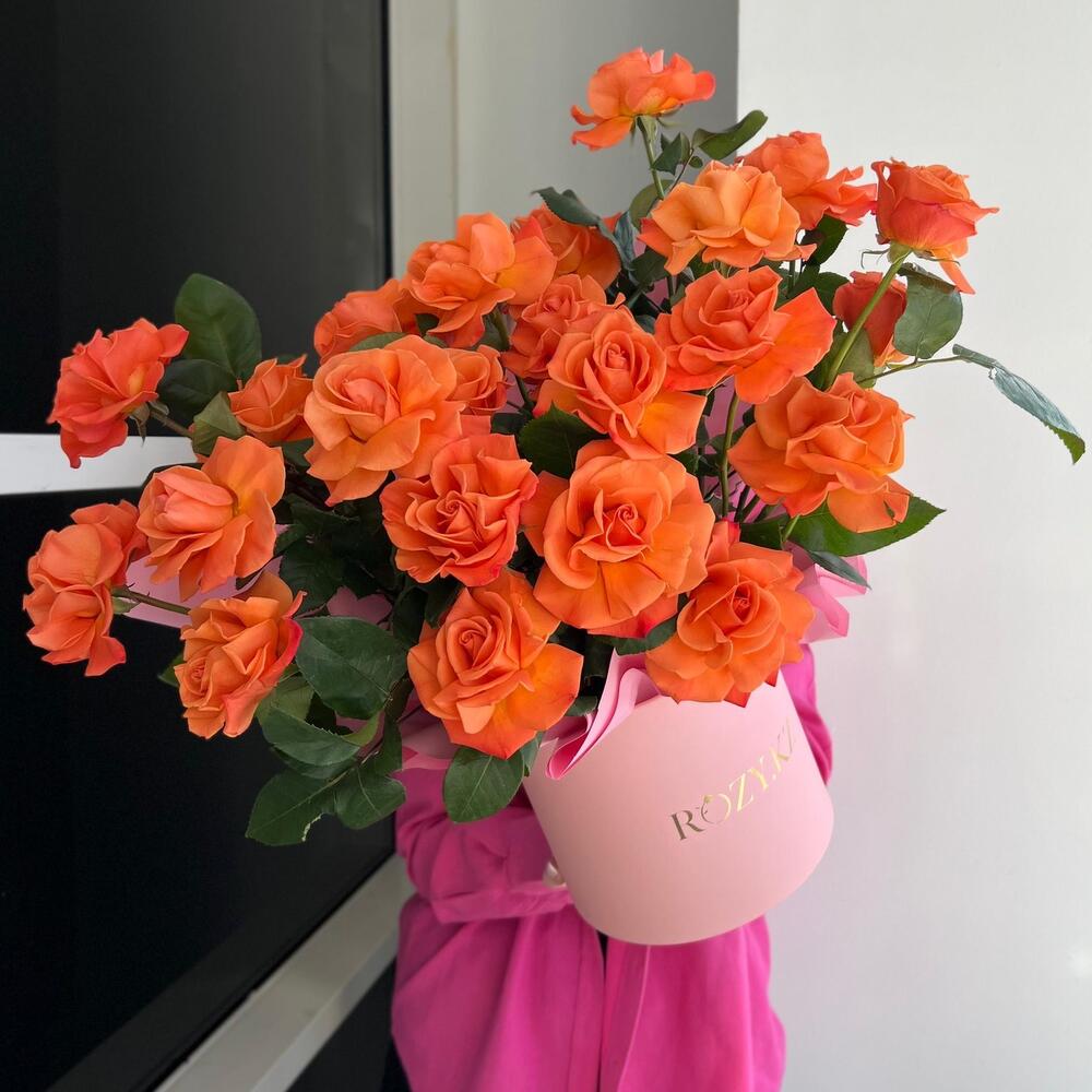 Упаковка дизайнерская - 2 шт. Роза оранжевая - 25 шт. Оазис флористический - 1 шт. коробка размер l - 1 шт.