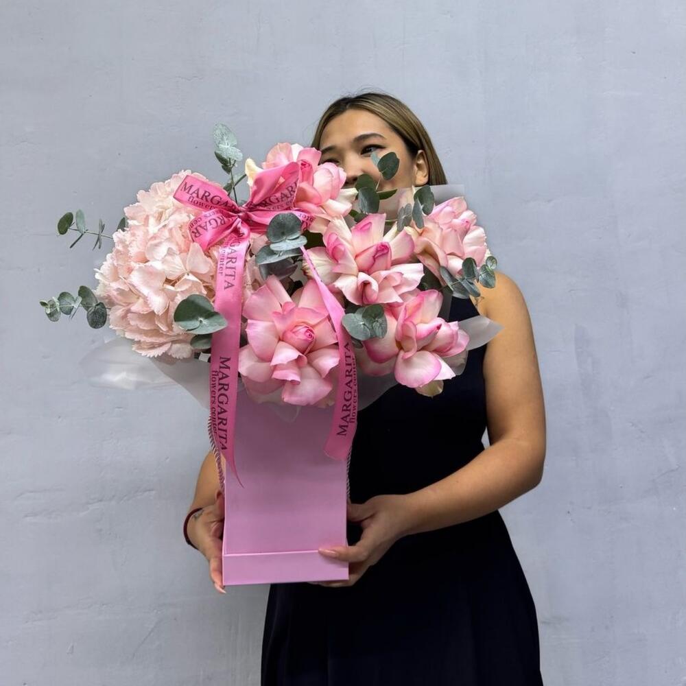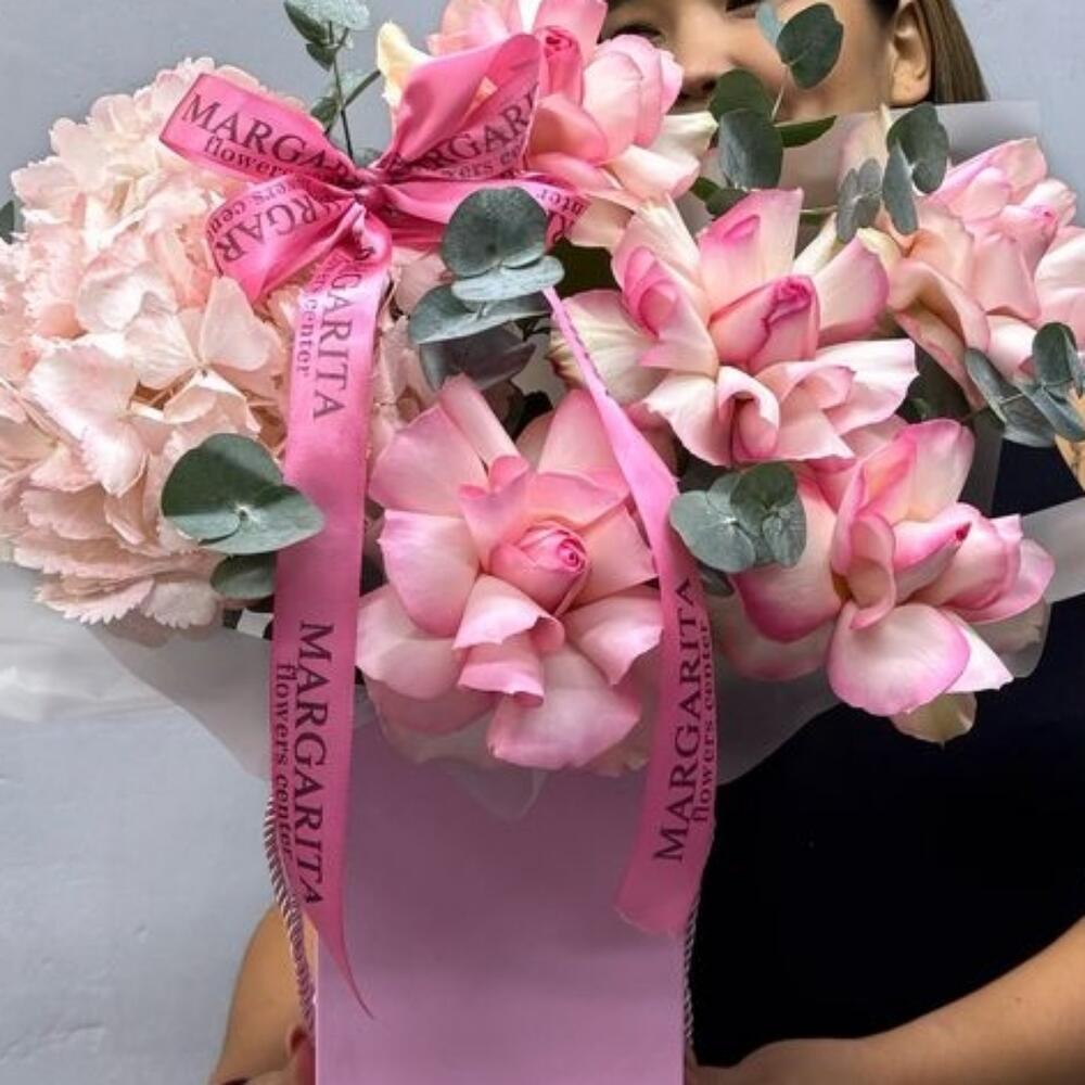 Эвкалипт - 2 шт. Французская роза - 5 шт. Гортензия розовая - 1 шт.