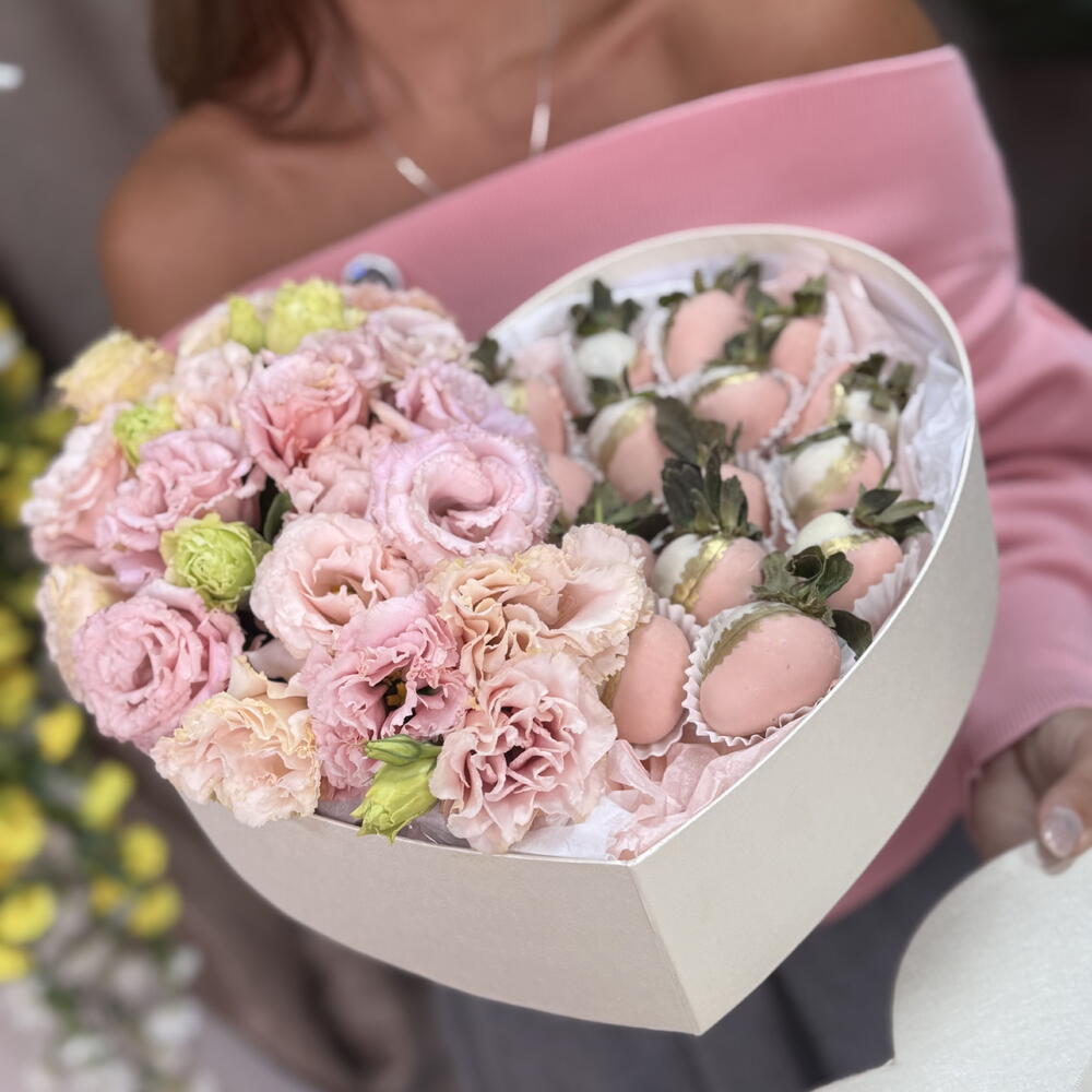 Лизиантус - 10 шт. Коробка сердце - 1 шт. Клубника в шоколаде - 20 шт.