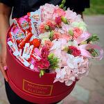 Цветы в коробке со сладостями