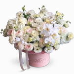 Гортензия - 2 шт. Маттиола - 5 шт. Эустома - 10 шт. Кустовая гвоздика - 7 шт. Фаленопсис - 1 шт. роза o’hara - 15 шт.