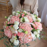 Гортензия - 9 шт. Лизиантус - 11 шт. Эвкалипт - 4 шт. спрей розы - 9 шт.