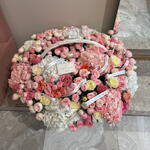 Гортензия - 9 шт. Корзина плетеная - 1 шт. розы - 25 шт. кустовые пионовидные розы - 45 шт.
