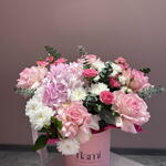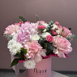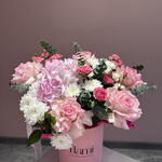Роза кустовая - 3 шт. Хризантема кустовая - 2 шт. Эвкалипт - 2 шт. Роза - 5 шт. Гортензия розовая - 1 шт.