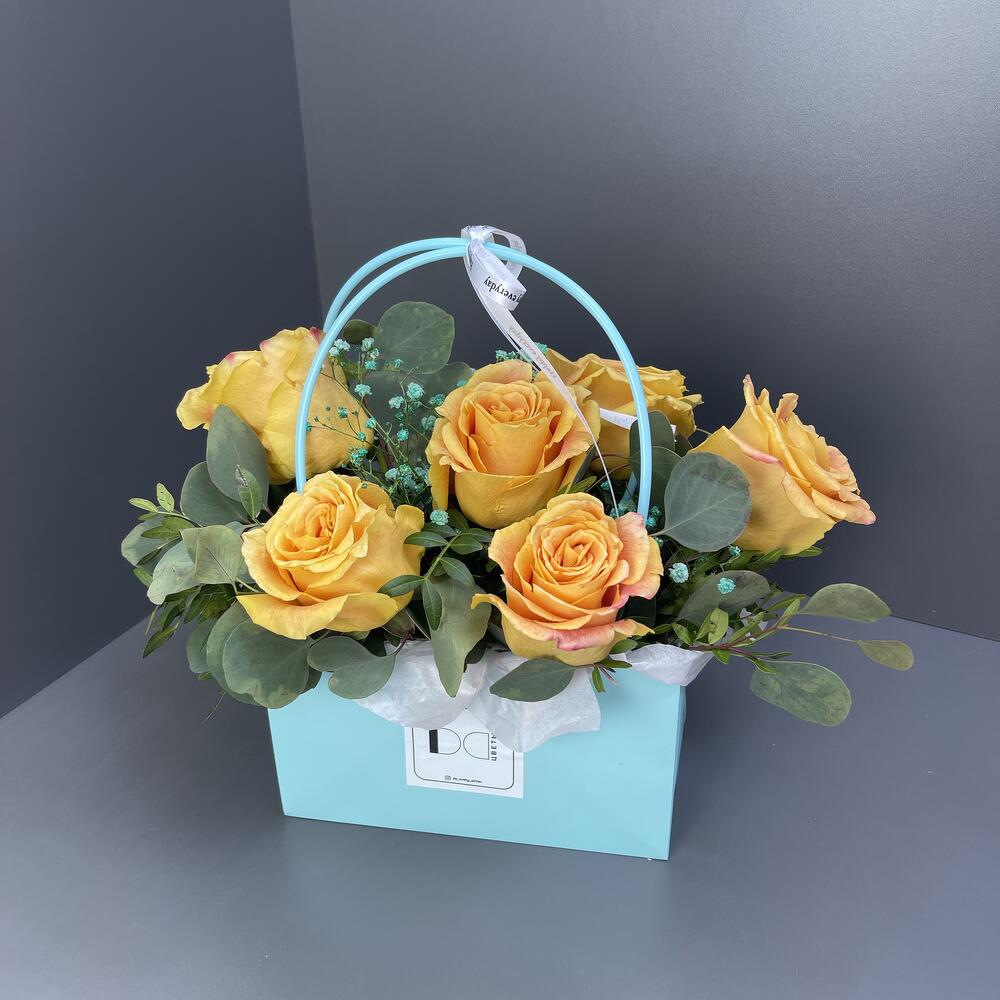 Гипсофила - 1 шт. Роза - 7 шт. Фисташка - 1 шт. аква сумка - 1 шт.