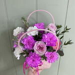 Эвкалипт - 1 шт. Роза одноголовая - 3 шт. Хризантема кустовая Розовая - 2 шт. Маттиола Розовая - 2 шт. диантус белый (гвоздика) - 3 шт.