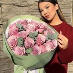 Эвкалипт - 1 шт. Роза - 15 шт. Оформление - 1 шт.