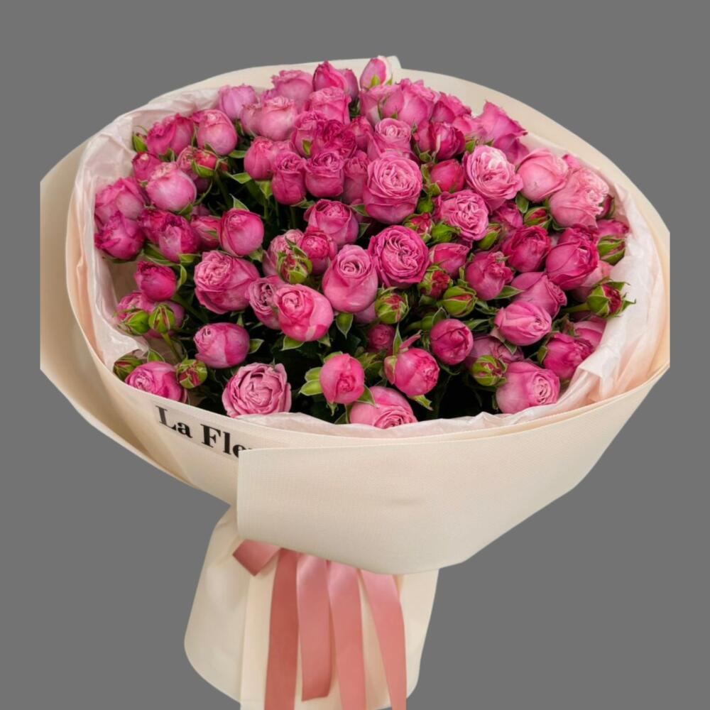 21 кустовая роза в нежном оформлении — трогательный букет для самой любимой женщины. Идеален для подарка маме в её день.