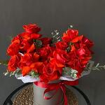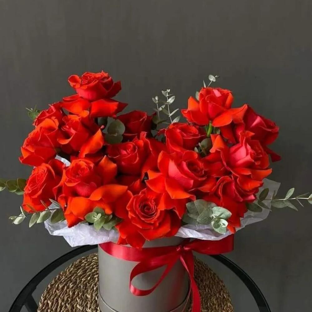 Эвкалипт - 1 шт. красные голландские розы - 15 шт.