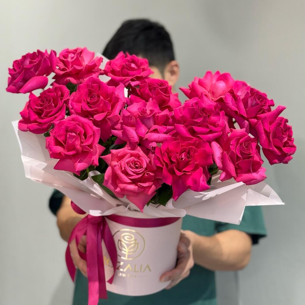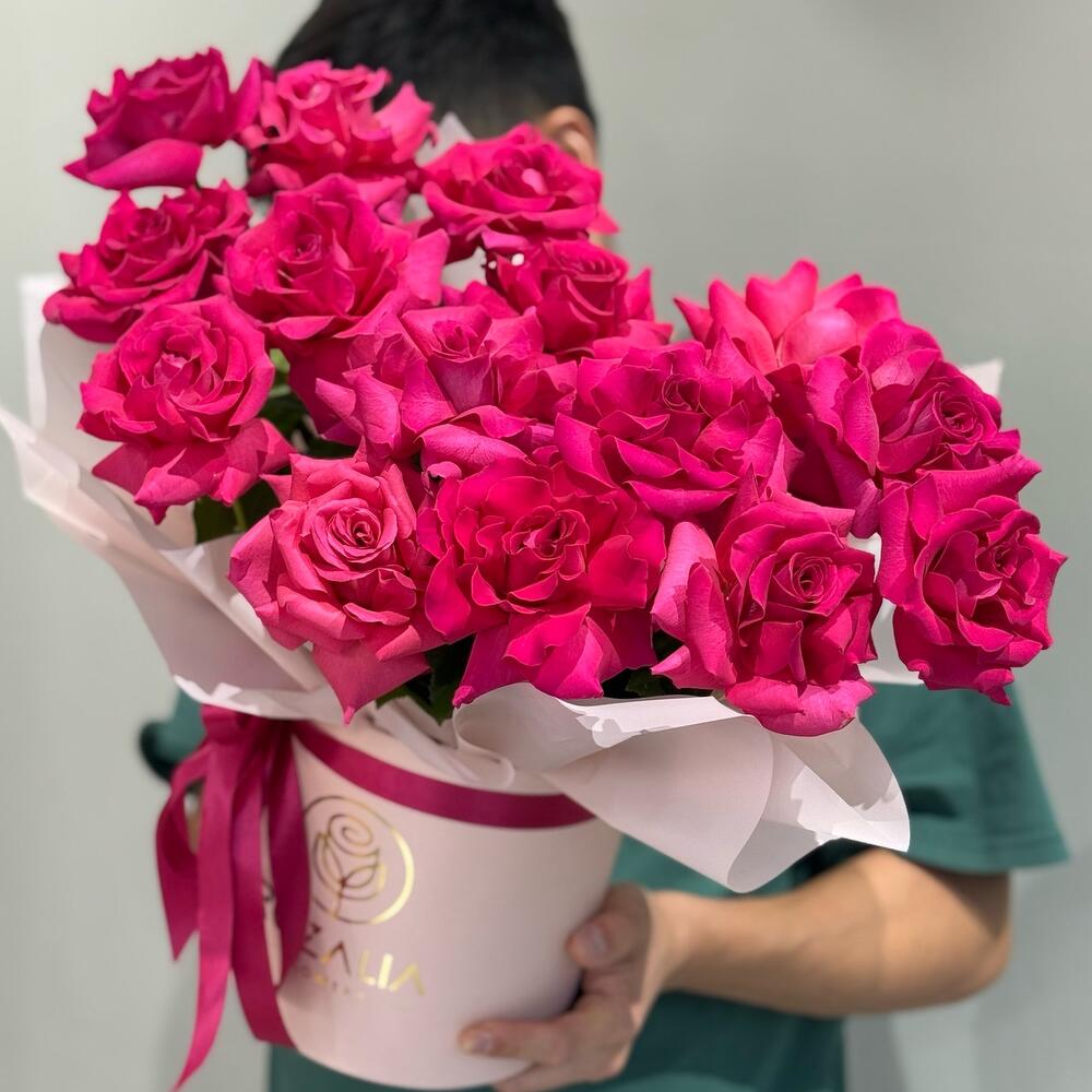 Коробка шляпная - 1 шт. Оазис флористический - 2 шт. французские розы - 15 шт.