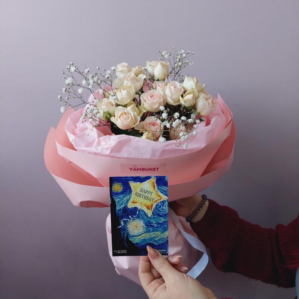 Гипсофила - 1 шт. Кустовая роза - 3 шт.