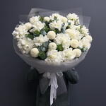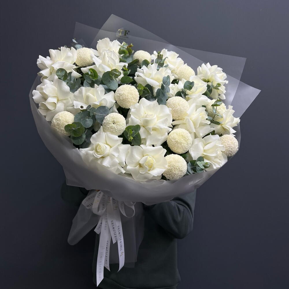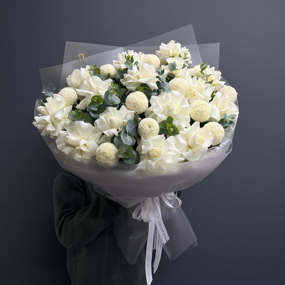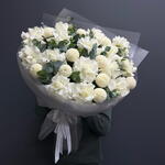 Доубукет белая Французская роза Хризантемы «Момоко» эвкалипт