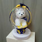 Мягкая игрушка, милый щенок, понравится ребенку любого возраста, а упаковка в шар удивит и добавит интриги. Композиция дополнена мигающей светодиодной подсветкой. По желанию заказчика на шар добавляется наклейка с пожеланием.
