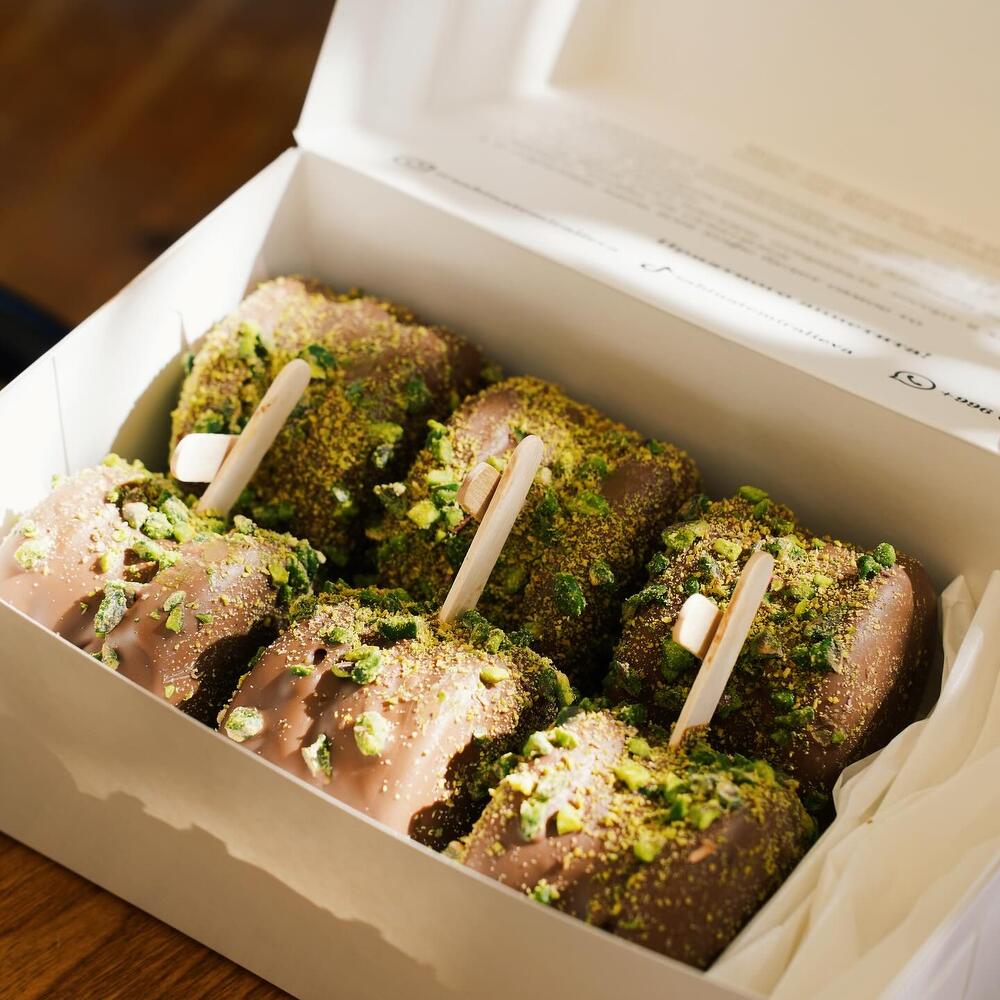 Яркий букет с золотистым подсолнухом, кремовыми гвоздиками, альстромериями и красными ягодами — символ тепла, энергии и уюта. В комплекте авторские макаронс «Dubai collection» с восточным характером: нежная миндальная текстура, фисташка, финики и карамель.