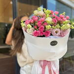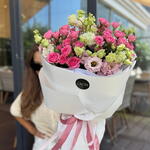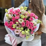 Роза кустовая - 6 шт. Эустома - 6 шт. Дизайнерская упаковка - 1 шт.