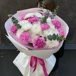 Хризантема кустовая - 5 шт. Эвкалипт - 1 шт. Диантус - 9 шт.