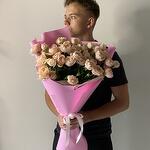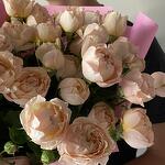 Оформление матовая пленка - 1 шт. Роза кустовая джульетта - 11 шт. открытка с вашими пожеланиями - 1 шт.