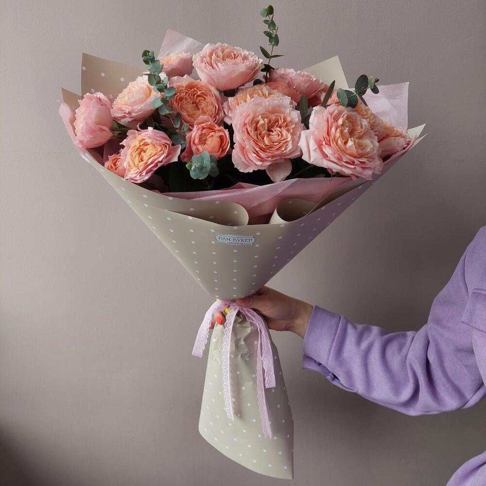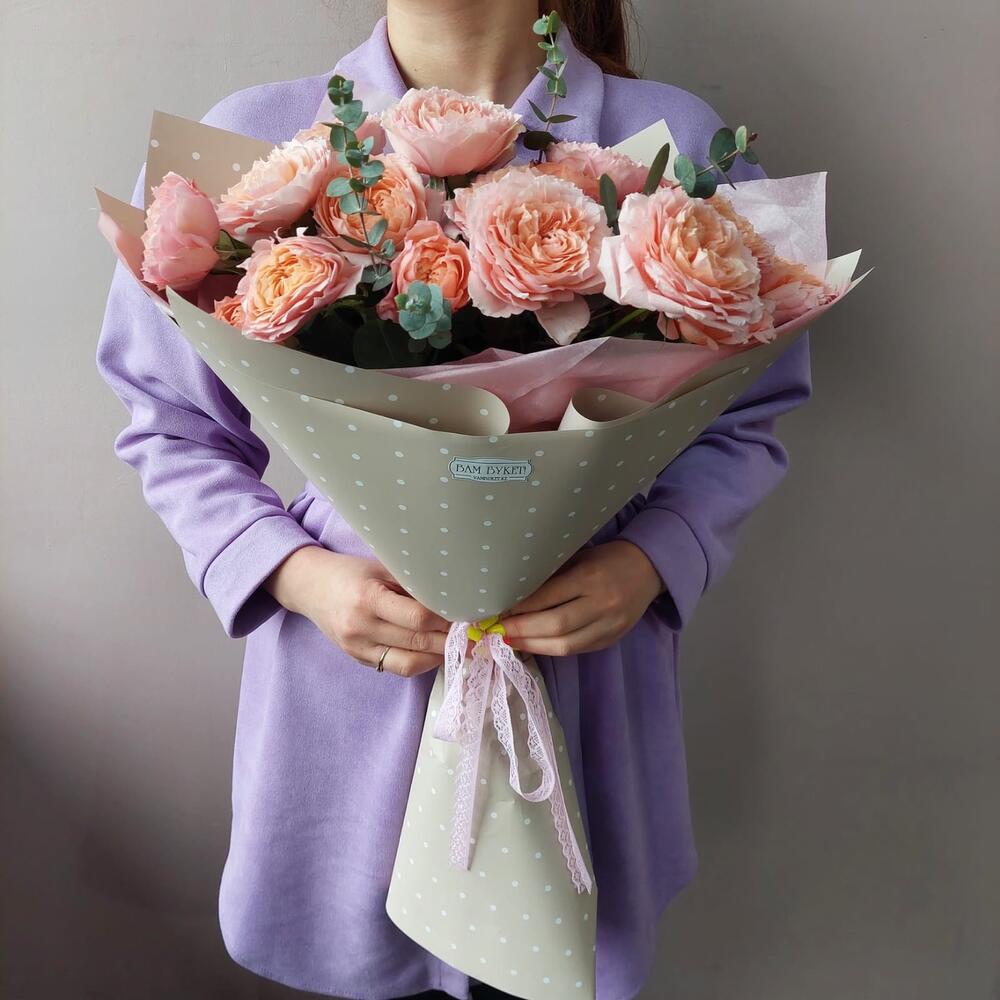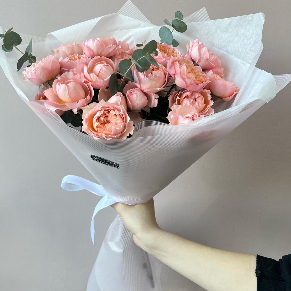Эвкалипт - 2 шт. Кустовая пионовидная роза - 5 шт.