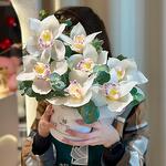 Орхидея Цимбидиум - 9 шт. Эвкалипт - 1 шт. Шляпная коробка - 1 шт.