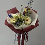 Гортензия - 2 шт. Дельфиниум - 3 шт. Солидаго - 2 шт. Хризантема - 1 шт. Упаковка - 1 шт. Гербера - 3 шт.