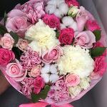Хлопок - 4 шт. Кустовая роза - 4 шт. Гвоздика - 6 шт. розы - 9 шт.
