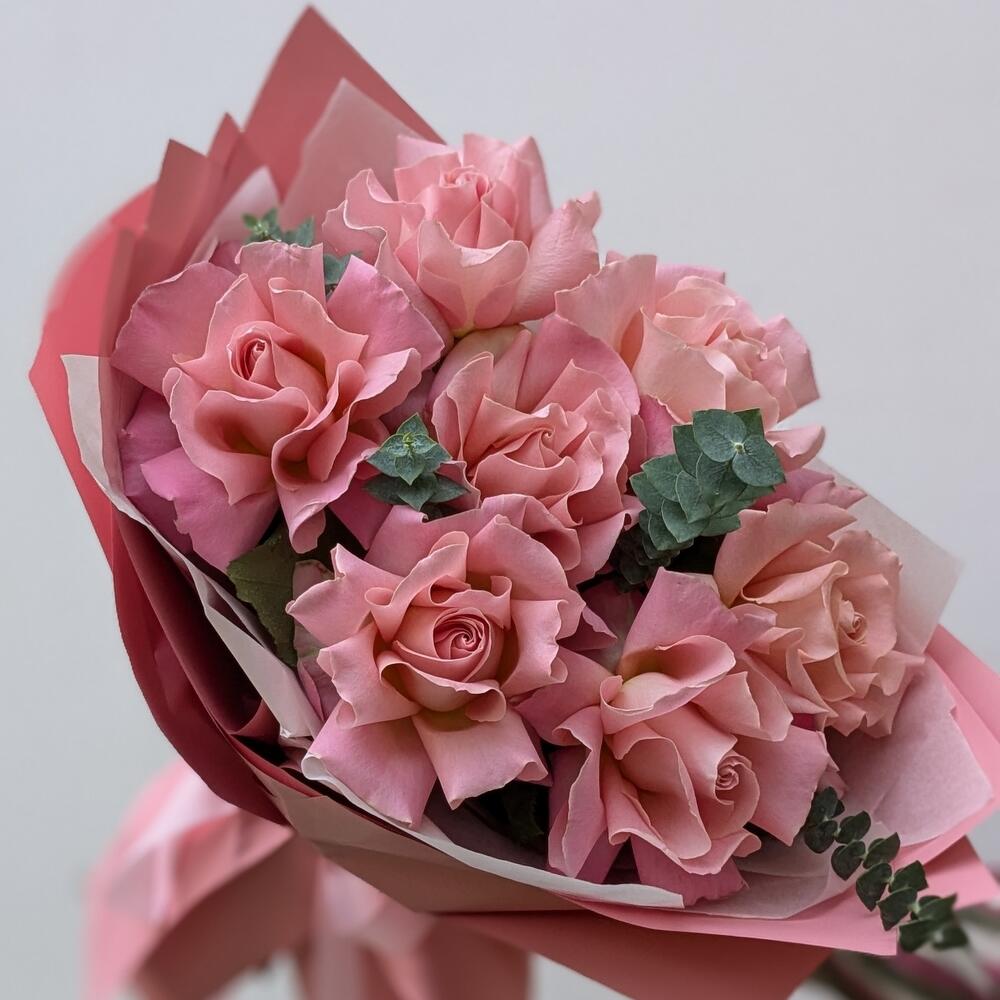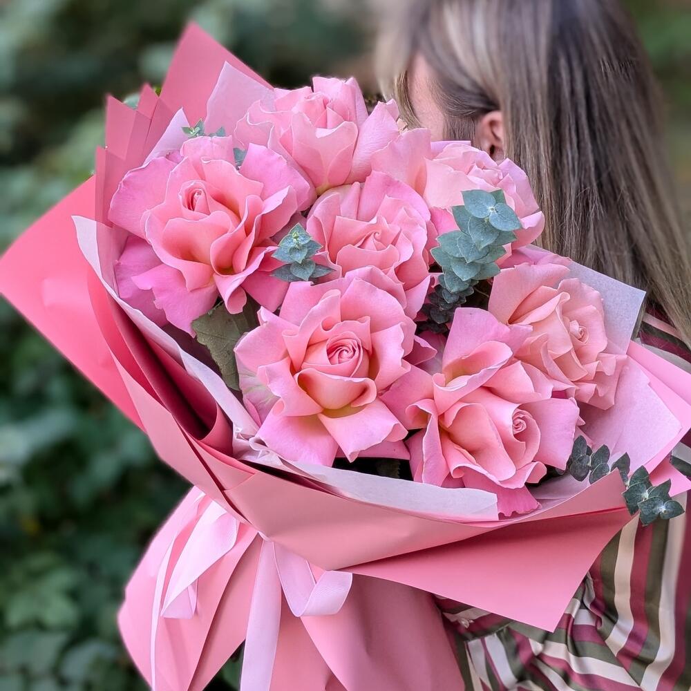 7 французских роз Эрмоза с эвкалиптом