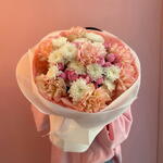 Кустовая хризантема - 3 шт. Пионовидная кустовая роза - 4 шт. Одноголовая роза - 7 шт.