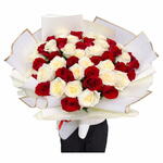 красные розы - 26 шт. белые розы - 25 шт.