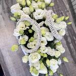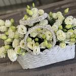 Белая композиция в корзине из белых эустом. Не требуется ставить в воду