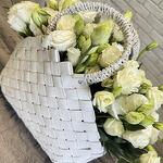 Корзина плетеная - 1 шт. Оазис флористический - 1 шт. эустома белая - 17 шт.