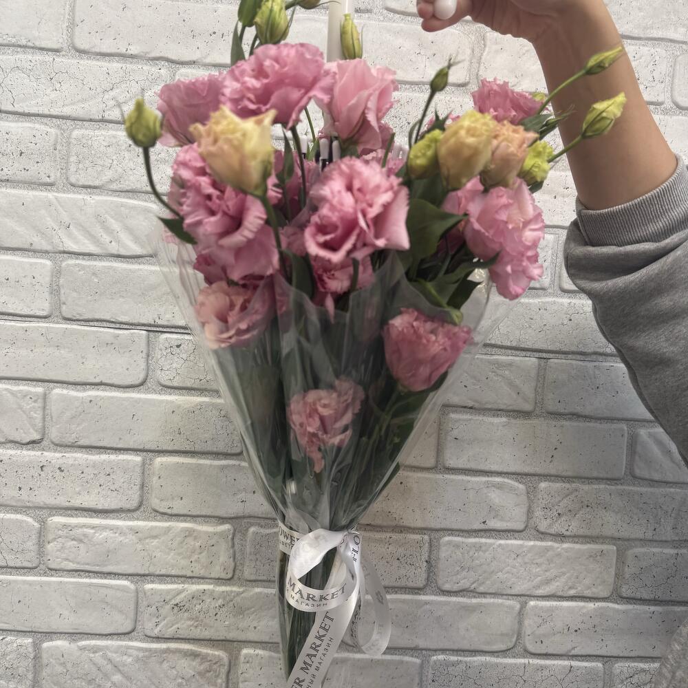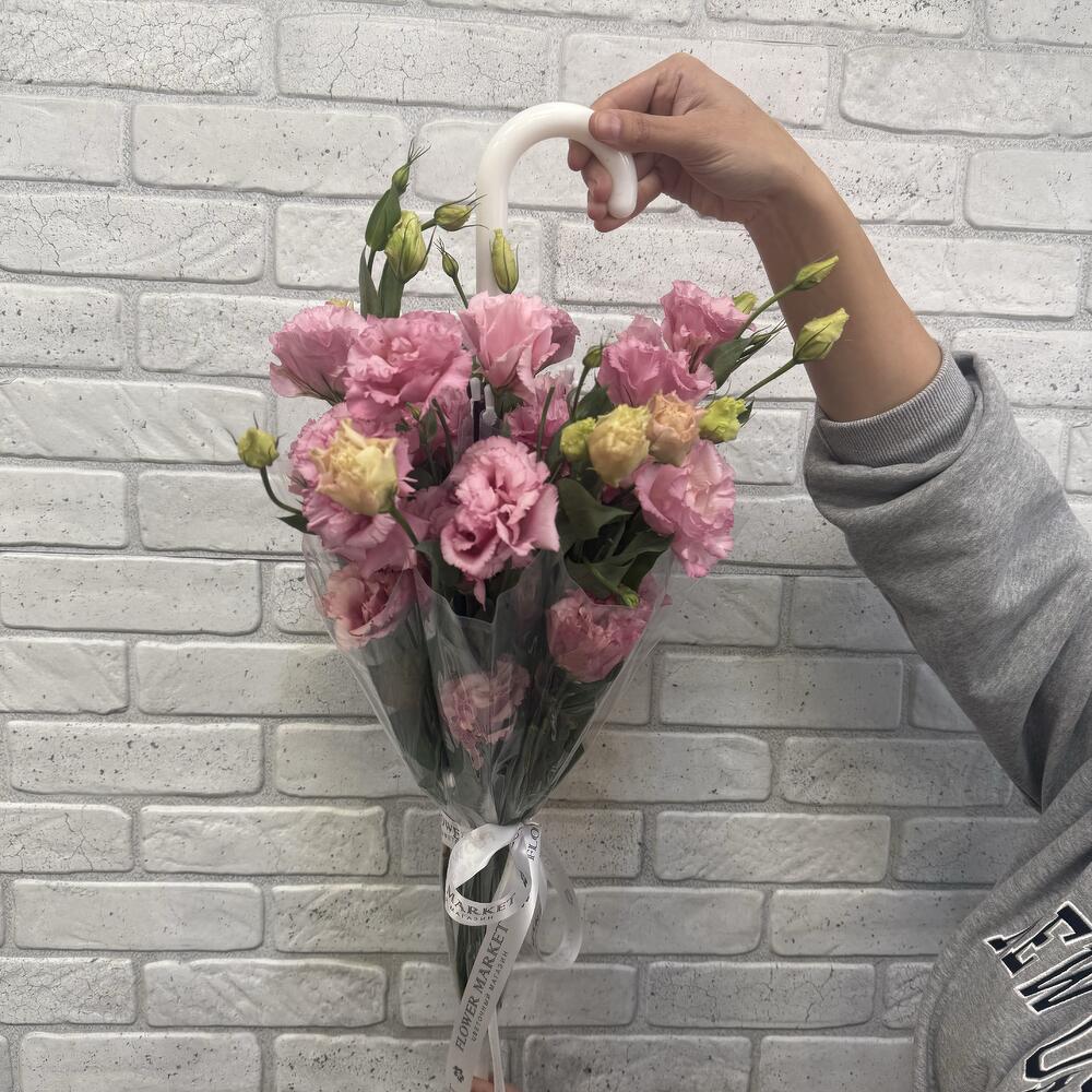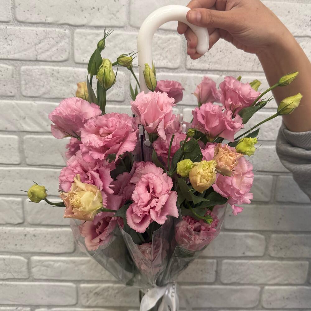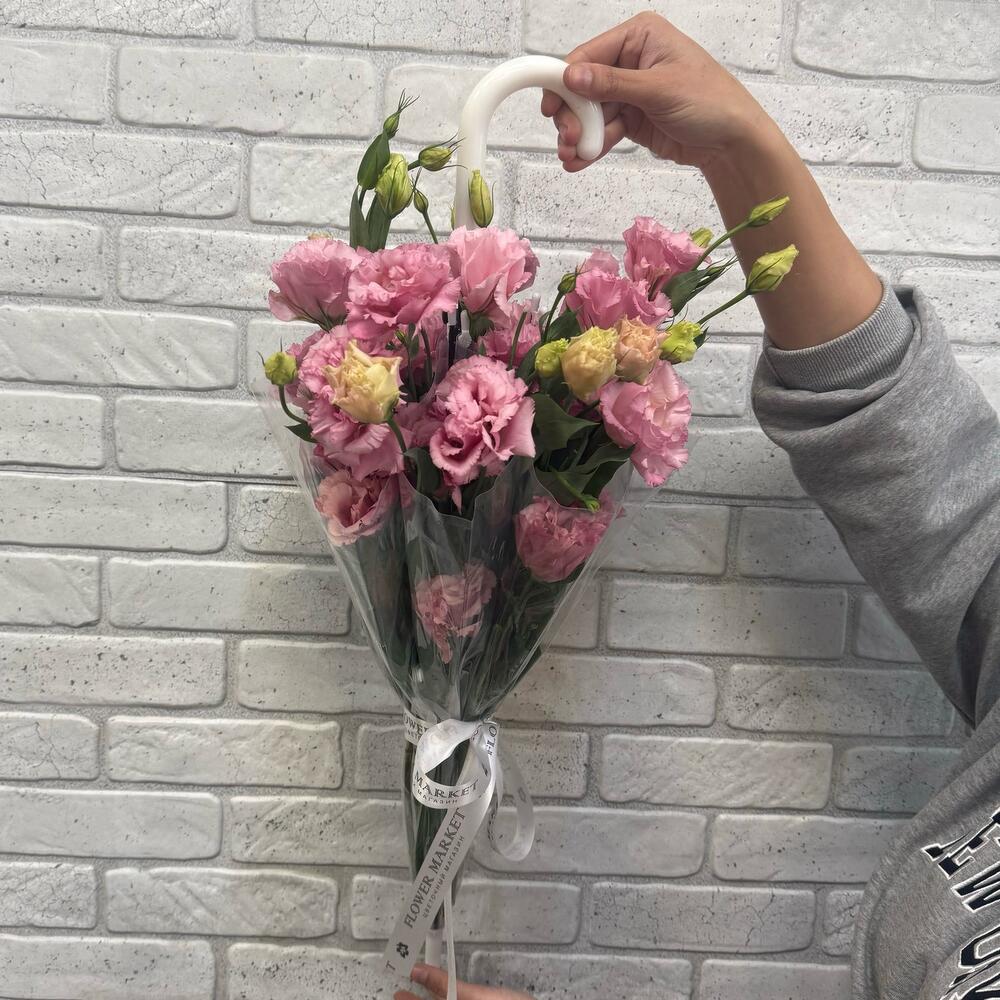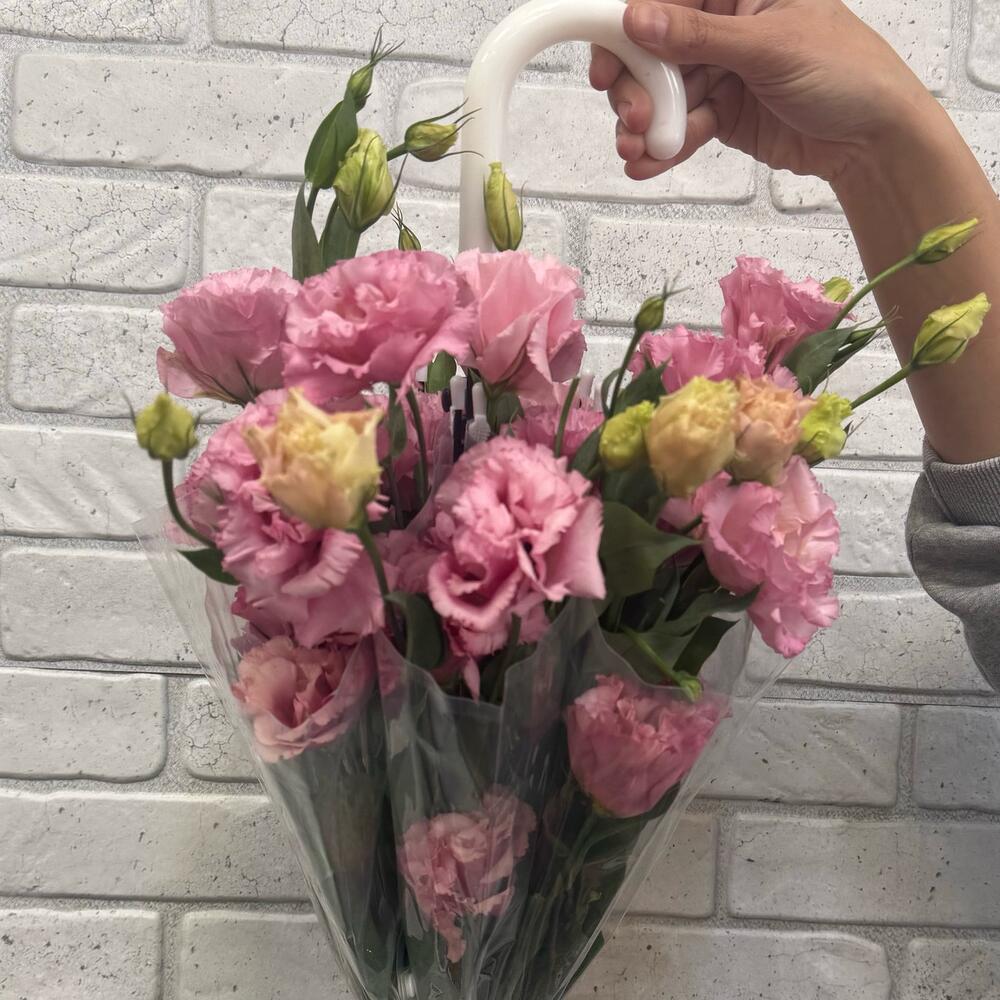 Лента - 1 шт. Эустома - 7 шт. Зонтик - 1 шт.