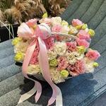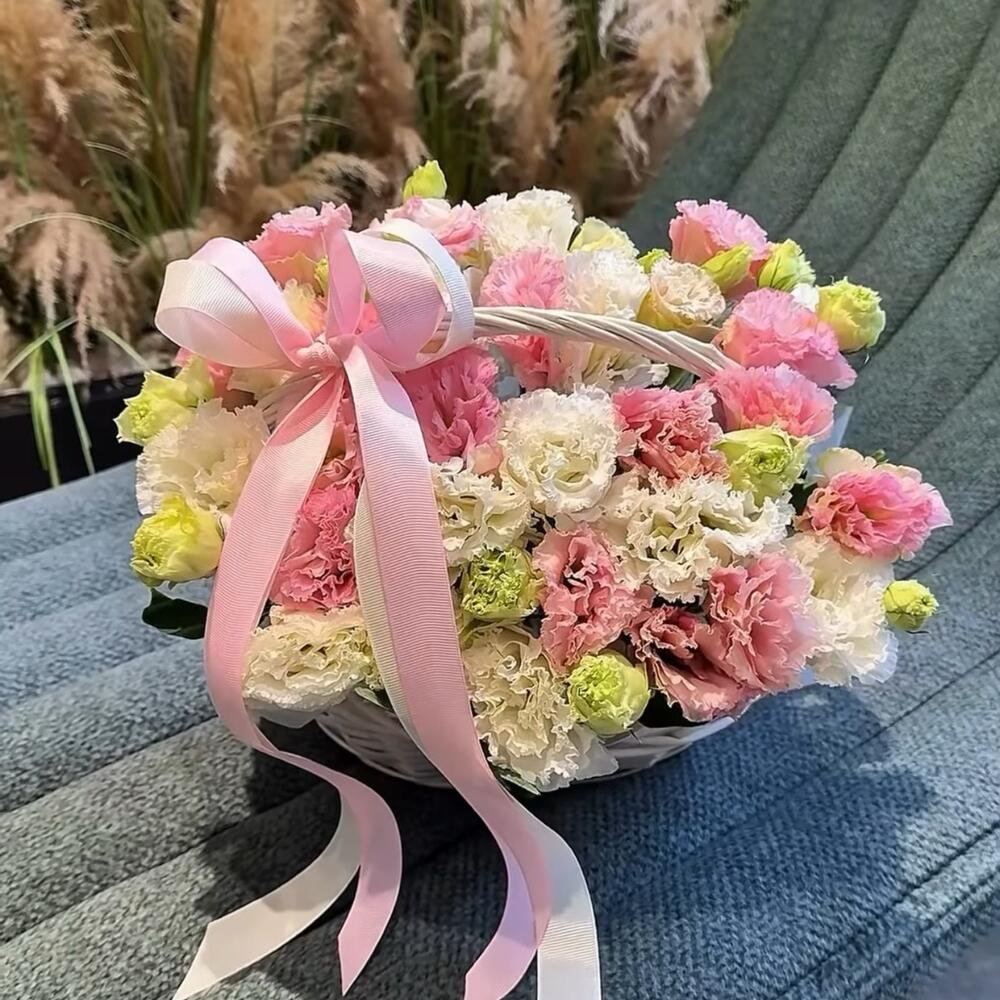 Корзина из эустом — это воплощение лёгкости и утончённости. 🌿 Нежные колокольчатые бутоны эустомы, похожие на мини-розы, создают воздушную композицию, полную свежести и романтики. Цветовая палитра может варьироваться от белой и кремовой до сиреневой или розовой — каждая корзина выглядит по-своему уникально.