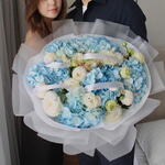 Гортензия - 6 шт. Эустома - 9 шт. Лагурус - 5 шт. момоко хризантема - 5 шт.