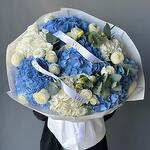 Гортензия - 7 шт. Лизиантус - 4 шт. Эвкалипт - 2 шт. Роза - 9 шт. Хризантема одноголовая - 3 шт.