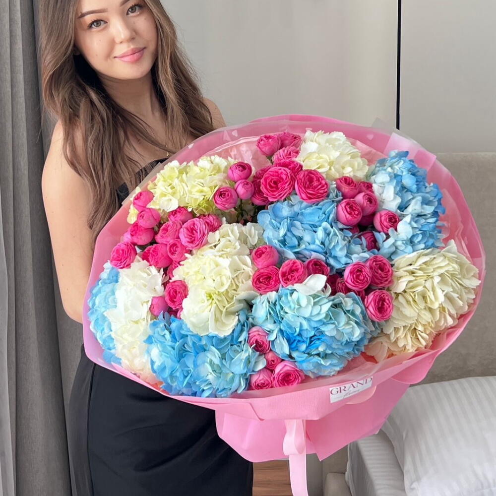 Евро букет из кустовых роз и гортензии