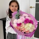 Гортензия - 1 шт. Хризантема кустовая - 2 шт. Эвкалипт - 1 шт. Роза - 5 шт. Диантус - 3 шт. Упаковка дизайнерская - 5 шт.