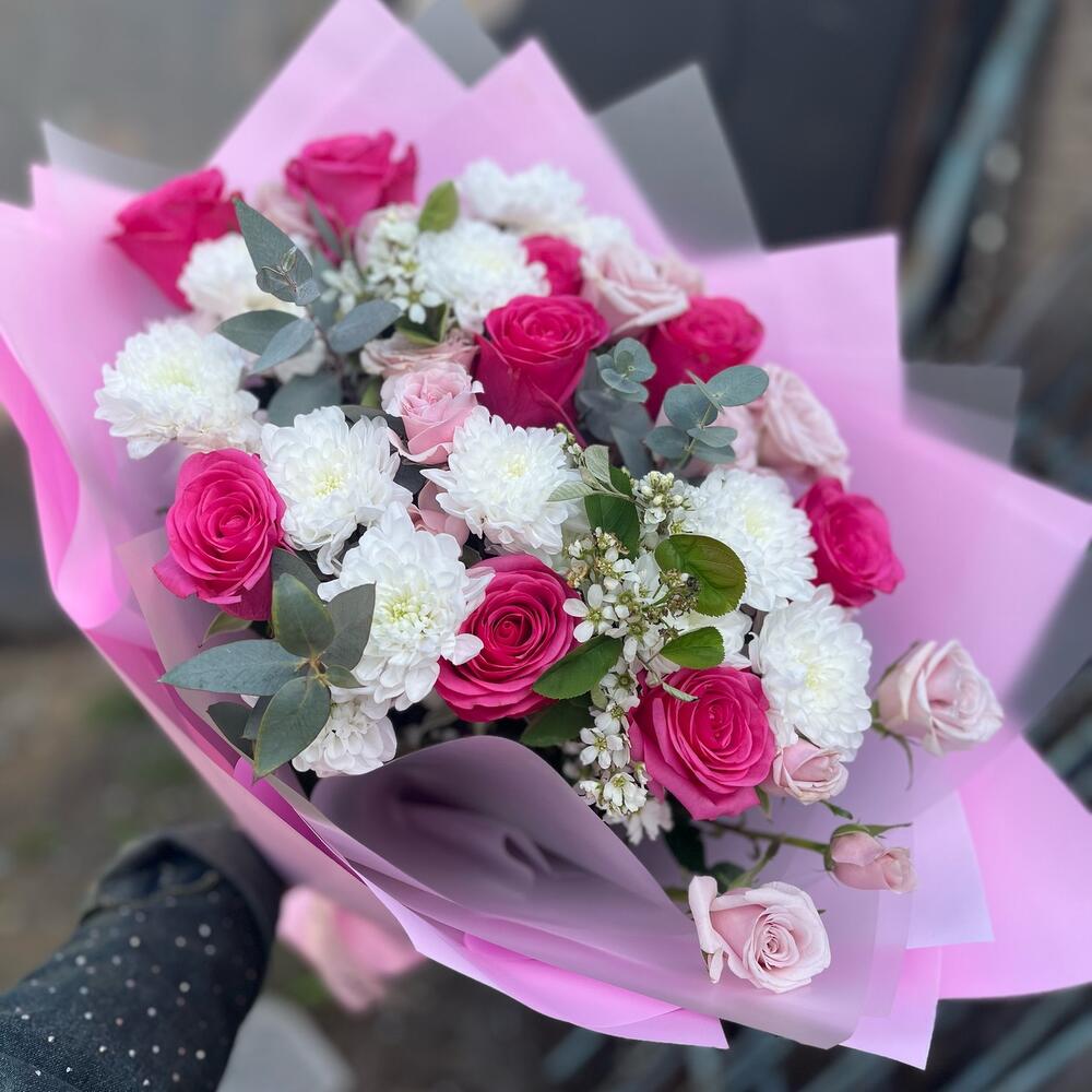 Кустовая роза - 4 шт. Хризантема - 3 шт. розы - 9 шт.