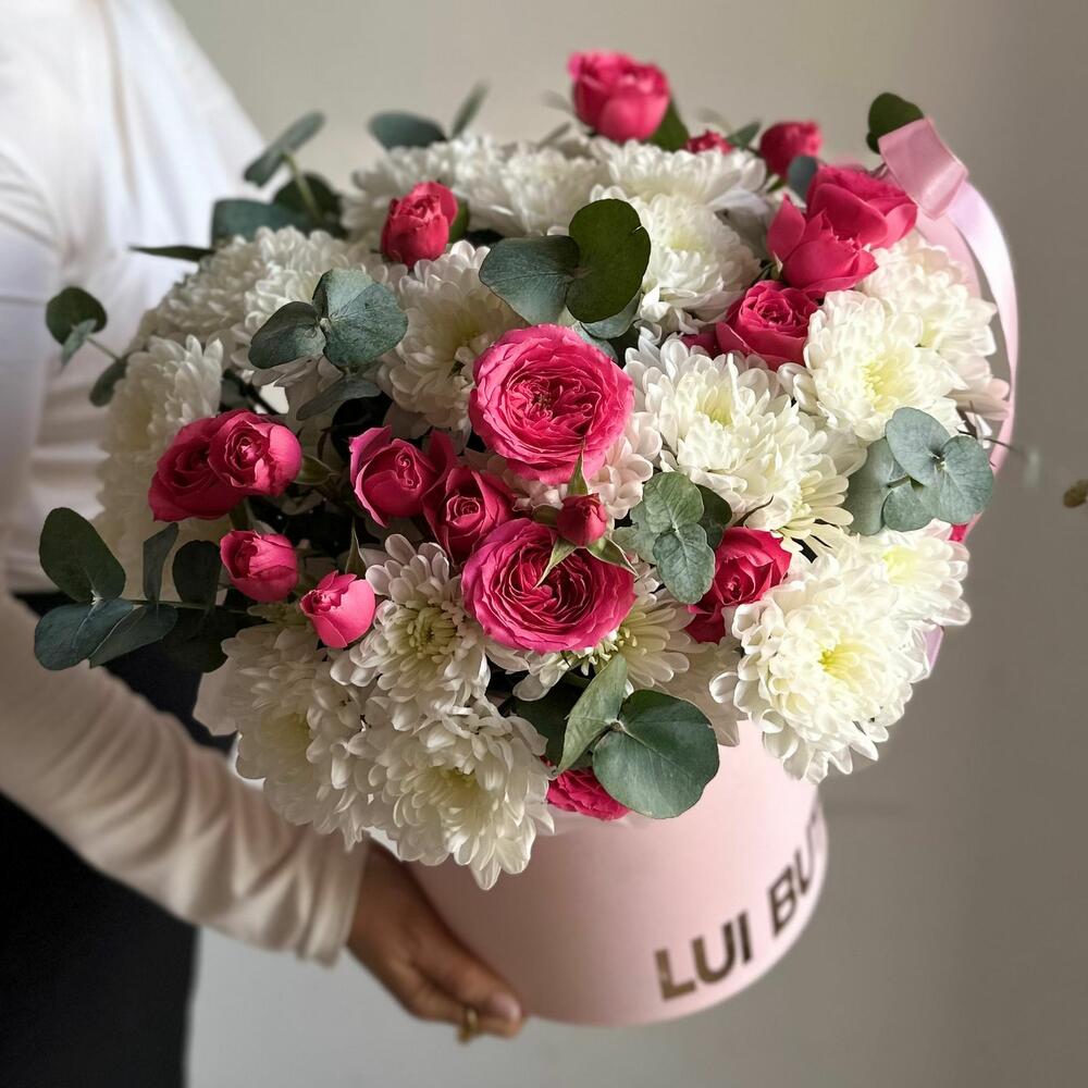 Эвкалипт - 2 шт. хризантемы - 9 шт. кустовые розы - 6 шт.