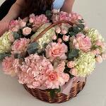 Гортензия - 5 шт. Эвкалипт - 1 шт. Кустовая роза - 7 шт. Французская роза - 9 шт.