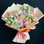 Лизиантус - 3 шт. Роза - 13 шт. Спрей роза - 3 шт. хризантемы одноголовые - 3 шт.