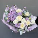 Гортензия - 1 шт. Лизиантус - 5 шт. Диантус - 3 шт. Пионовидная роза - 5 шт.