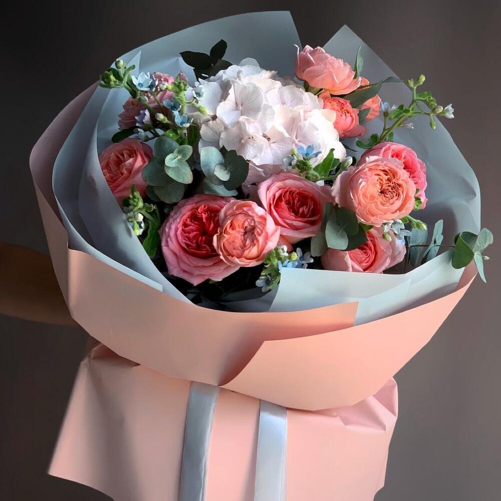 Гортензия - 1 шт. Роза пионовидная - 5 шт. джульетта роза пионовидная - 3 шт.