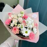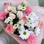 Хризантема кустовая - 1 шт. Кустовая роза - 1 шт. Гвоздика - 3 шт. розы - 5 шт.